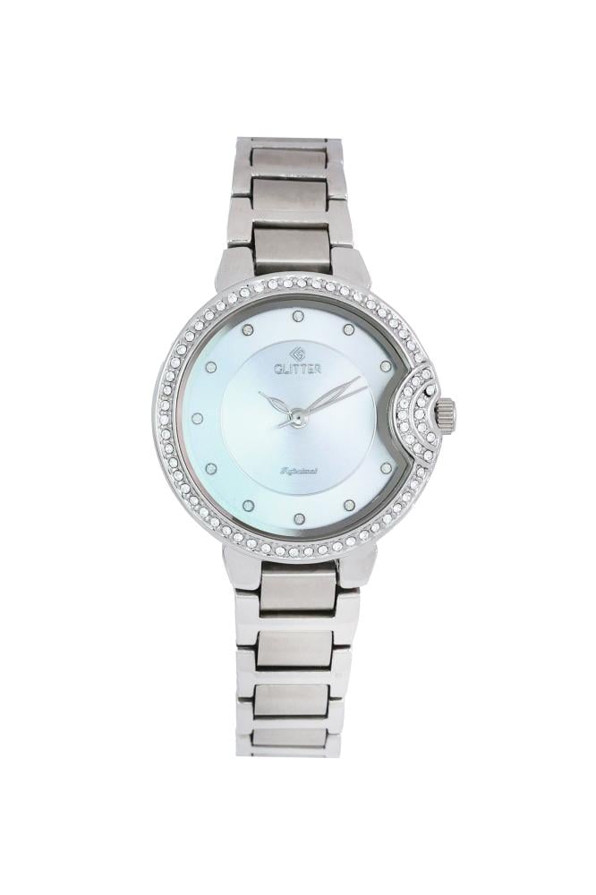 ساعة نسائي جليتر بلون فضي مينا فضي استالس ستيل